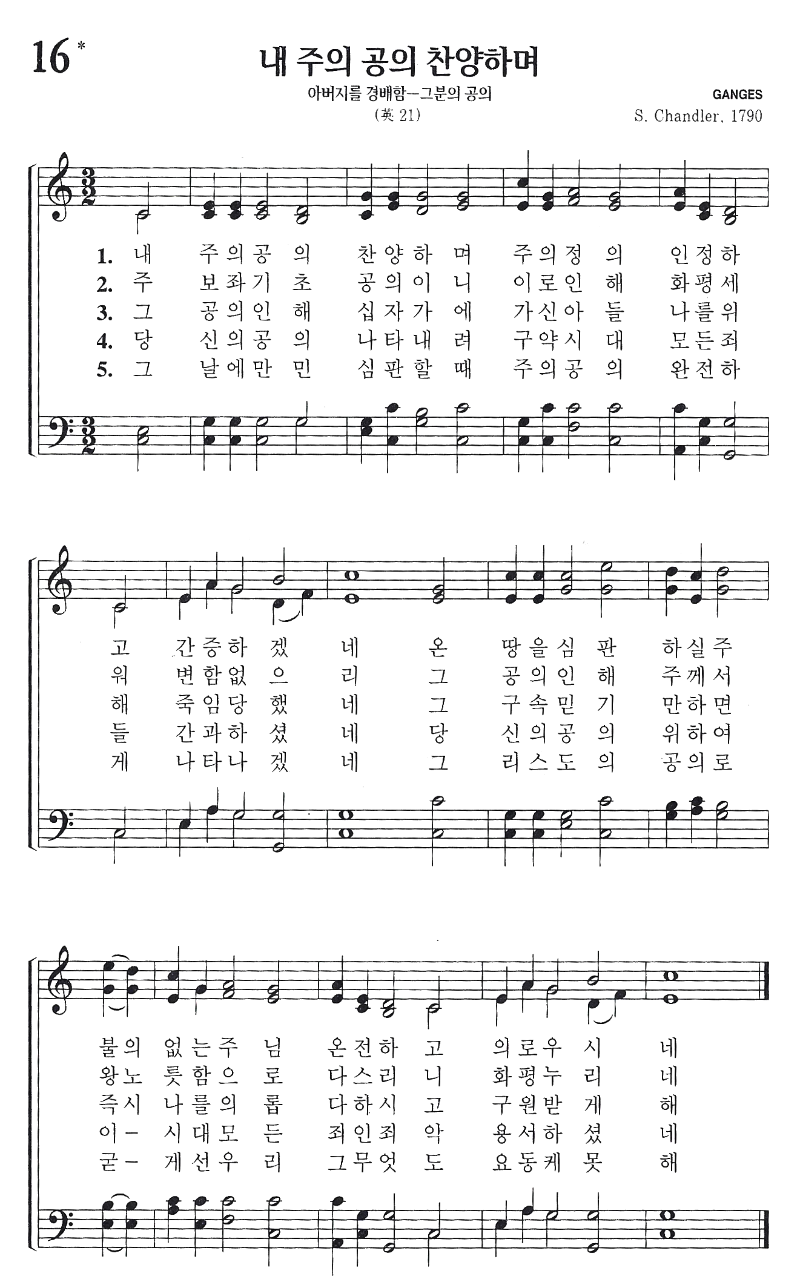 내 주의 공의 찬양하며 주의 정의 인정하고